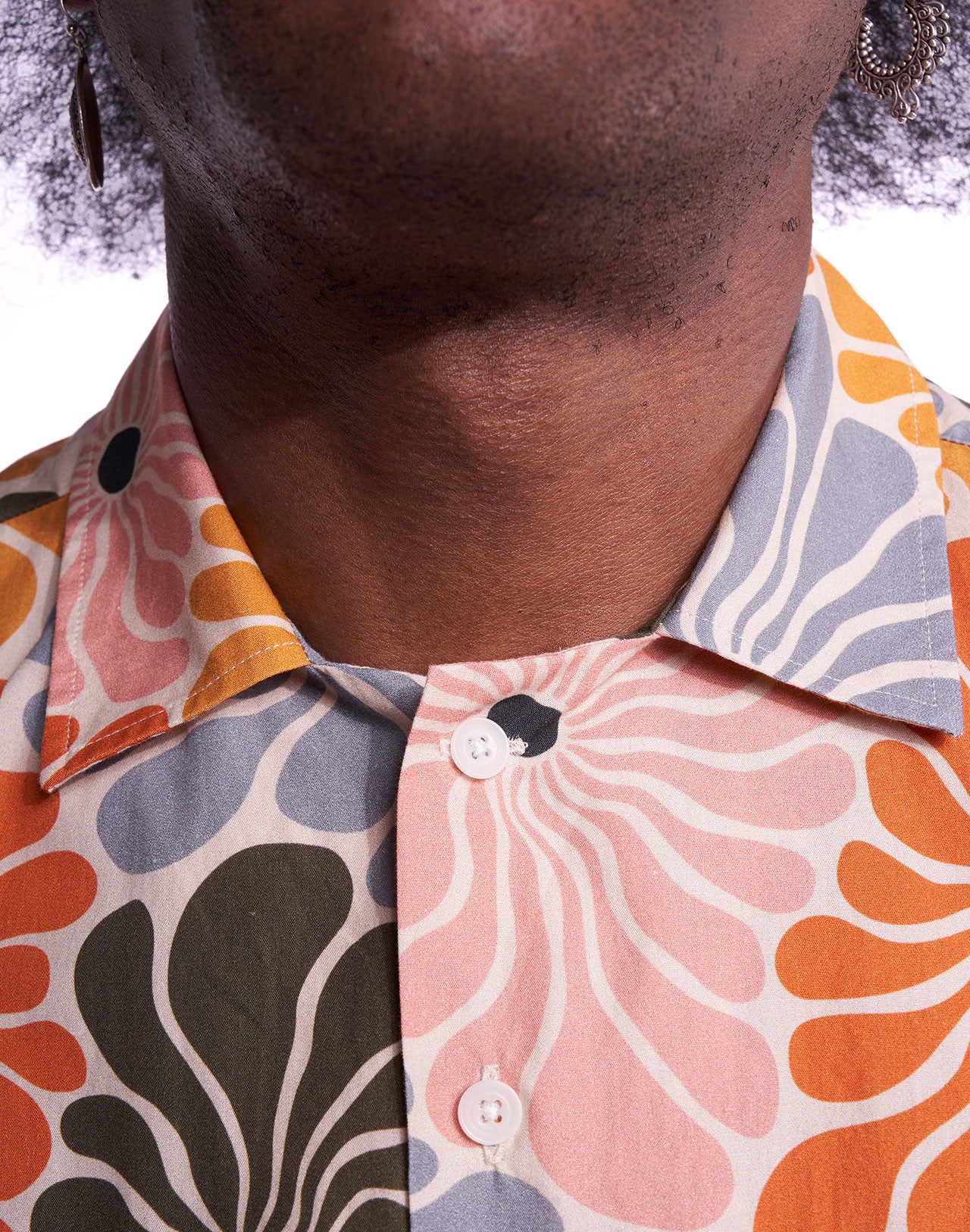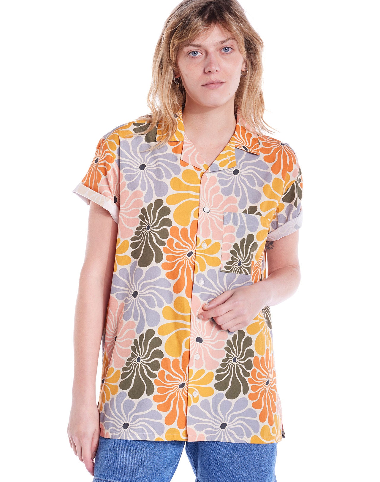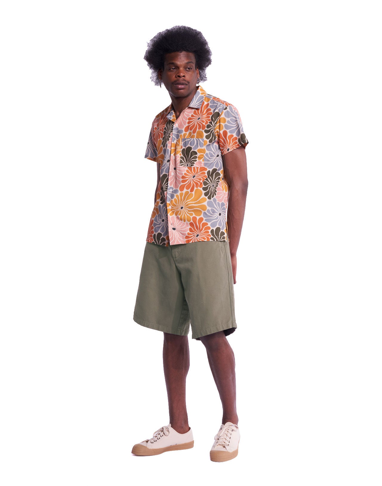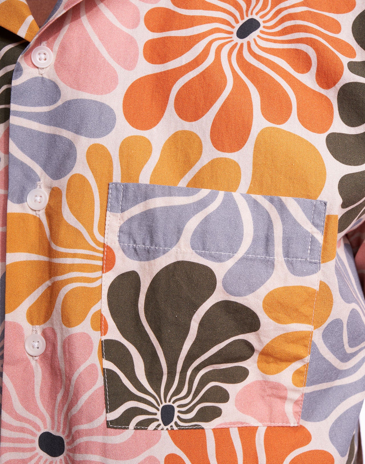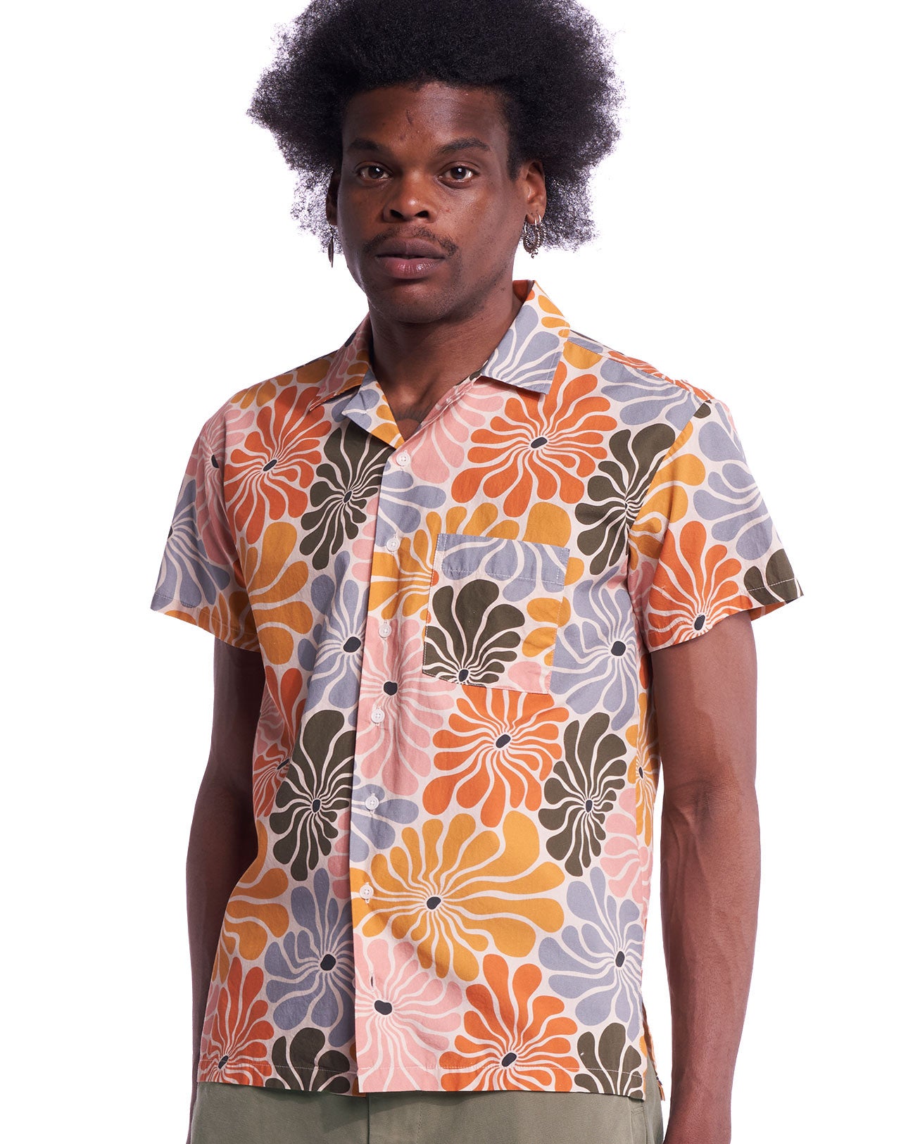 Chemisette à imprimé en all-over, poche poitrine. Coupe hawaïenne.