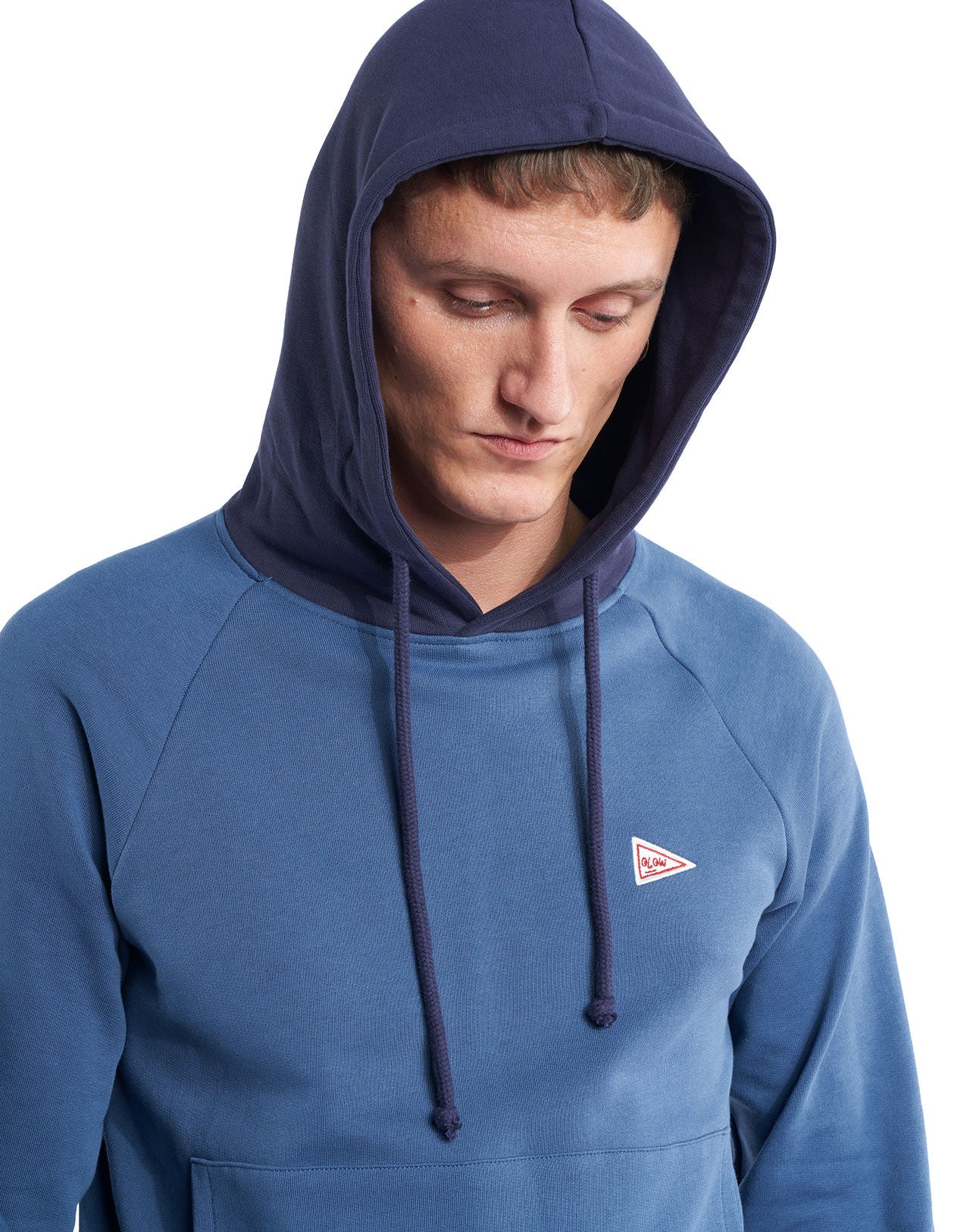 Sweat à capuche bicolore, manches raglan, patch poitrine brodé Olow.