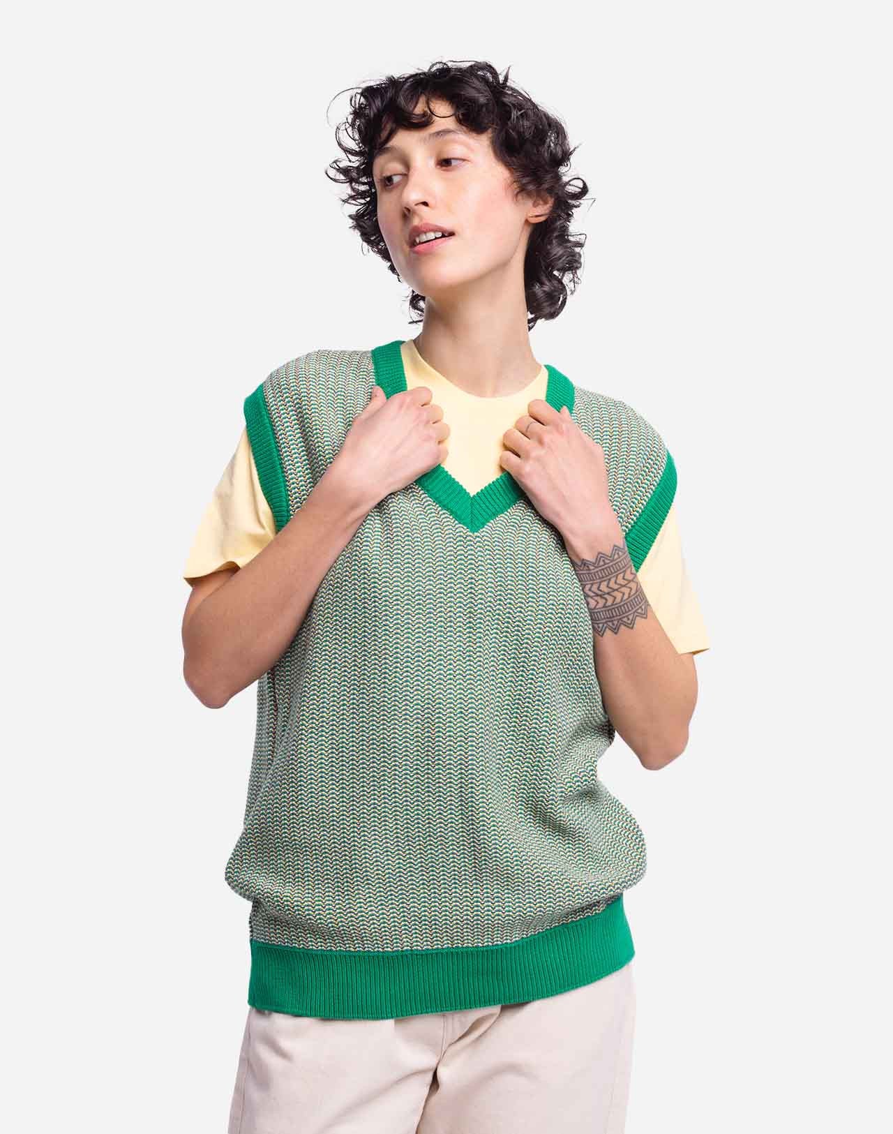 • Pull sans manche multicolore en coton biologique