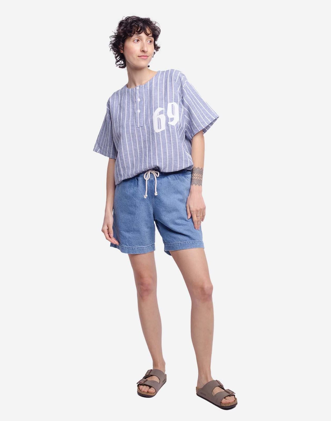 • Tunique rayée en lin et coton