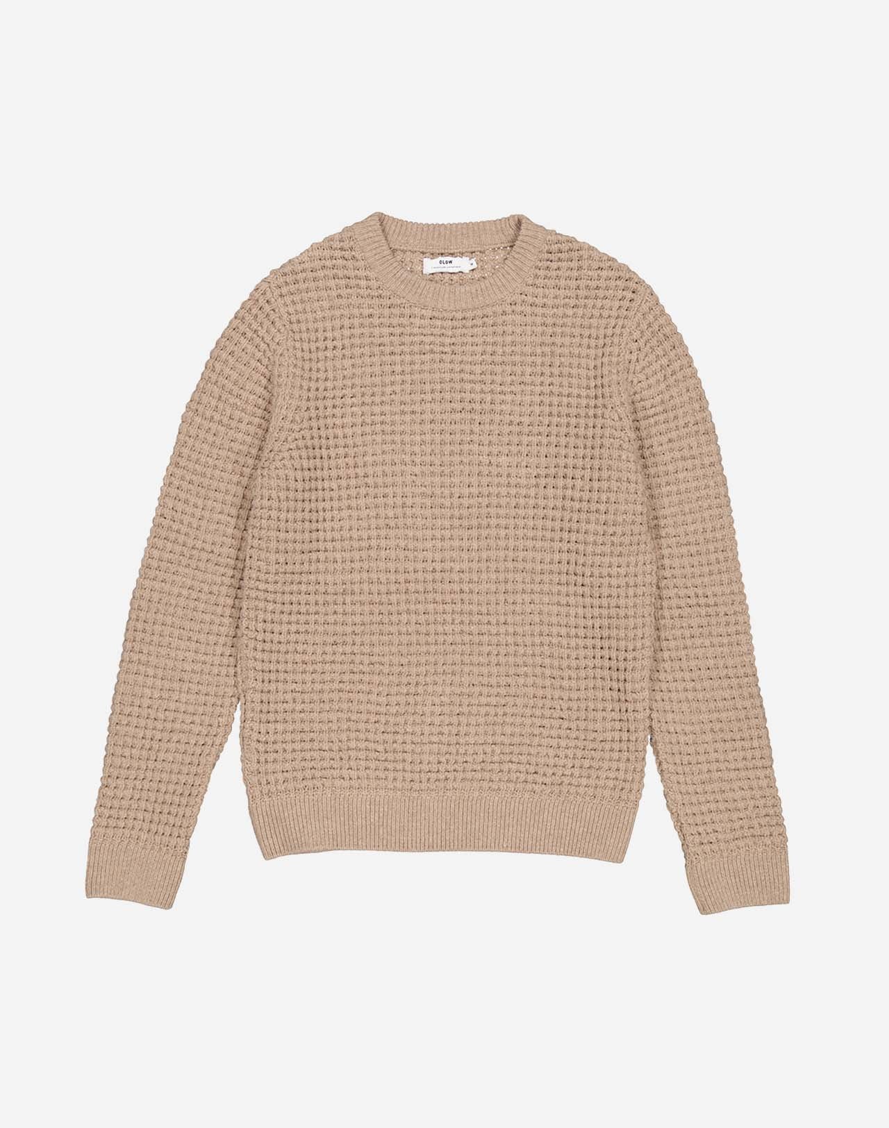 Parfois l'originalité tient à peu de chose. Ici un pull en nid d'abeille et une maille 100% recyclée, chaleur et douceur garanties