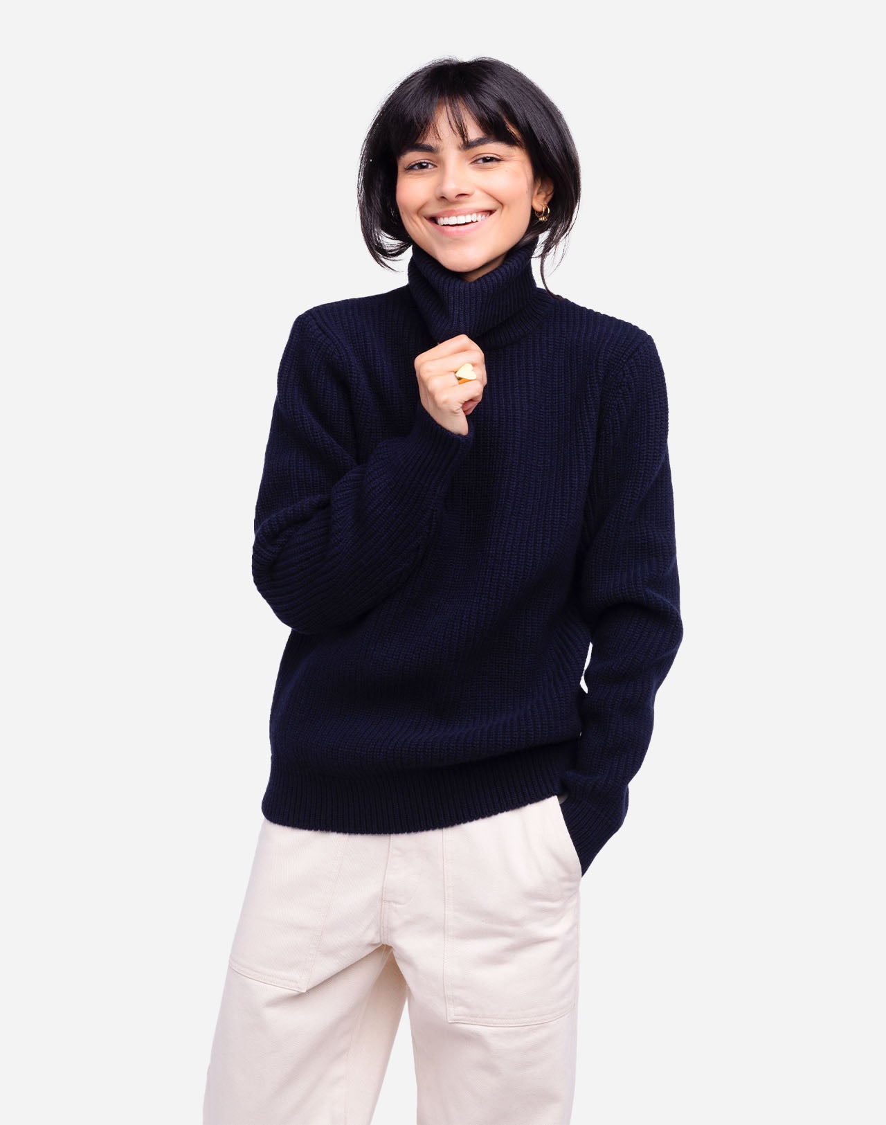 À défaut de porter une écharpe, un bon col roulé est toujours la bonne solution pour affronter le froid. La maille épaisse et douce du pull Ernest vous tiendront chaud tout au long de l'hiver.
