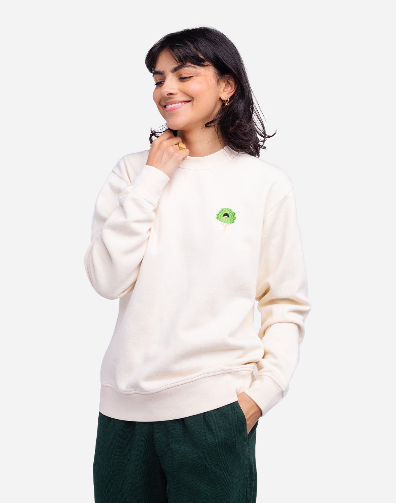 Le sweat en coton bio idéal pour se fondre dans la nature, avec l'illustration de l'artiste Quentin Monge