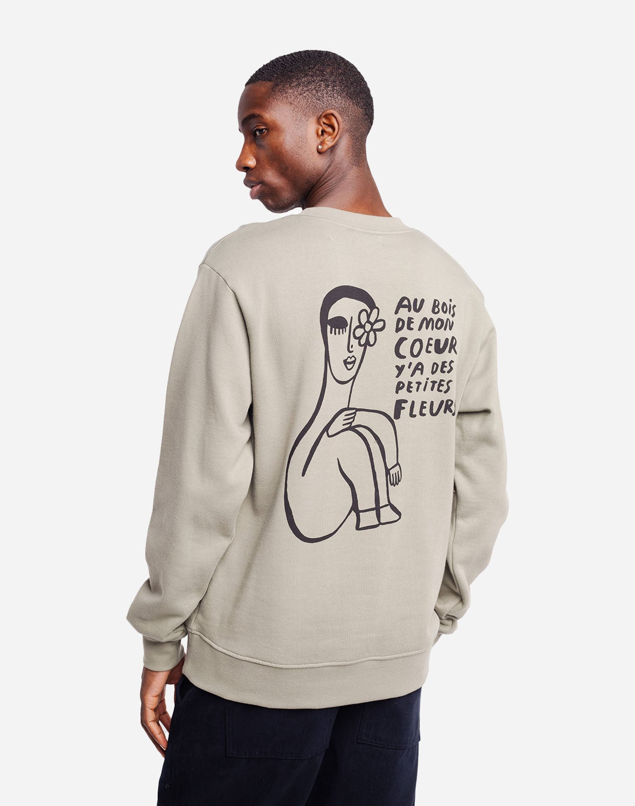 Au bois de mon coeur, y a des petites fleurs, et ce sweat en coton bio tout doux, illustré par l'artiste Twotma.