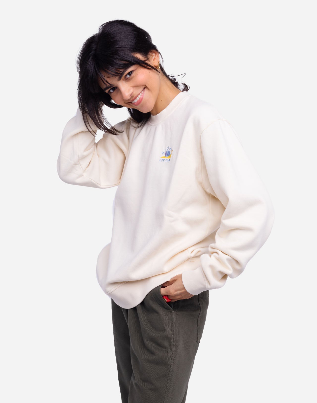 Une invitation de Simon Landrein à ralentir et prendre le temps, le tout emmitouflé dans ce sweat en molleton gratté