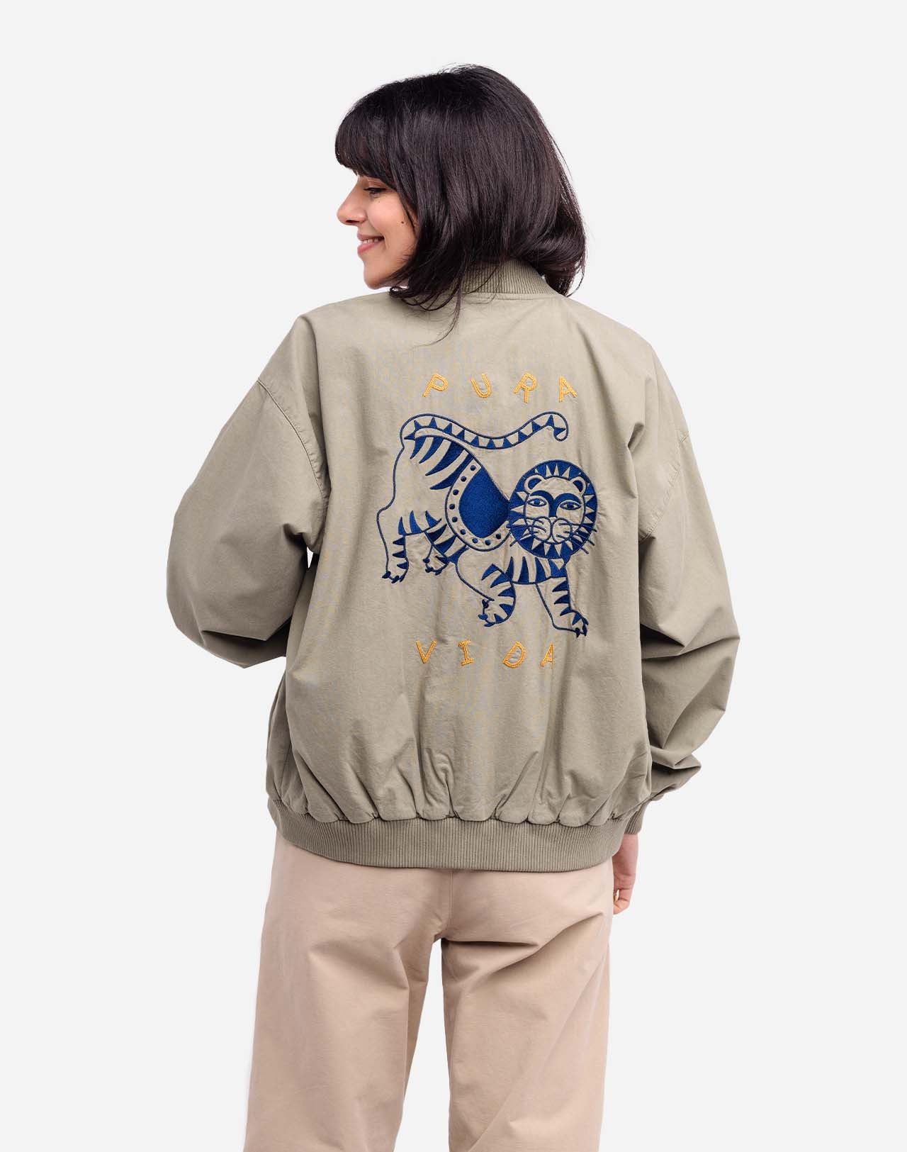 Ça aurait pu être un bombers tout ce qu'il y a de plus commun, mais la broderie dans le dos, signée de l'artiste Freya Clarke, lui donne ce qu'il faut de caractère.