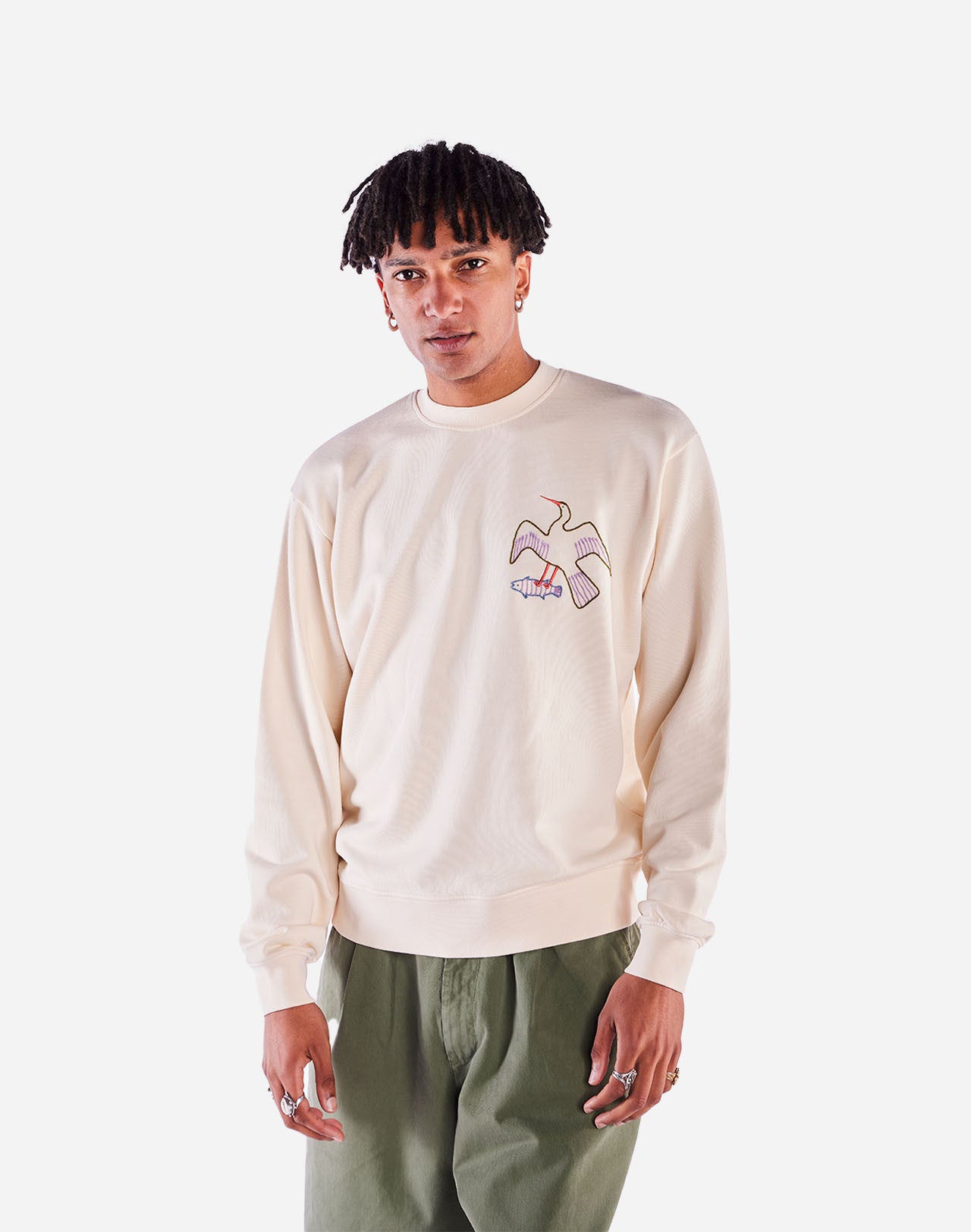 Un sweat en coton bio GOTS qui sent bon la côte cornouaillaise avec cette broderie d'oiseau pêcheur dessinée par l'artiste Madeleine Kemsley