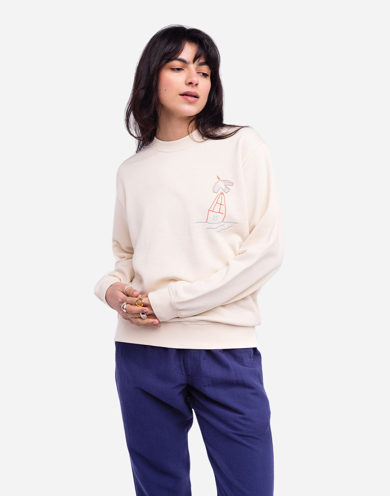 Le trait fin et délicat de l'artiste Madeleine Kemsley, aposé sur un sweat en coton bio GOTS tout doux