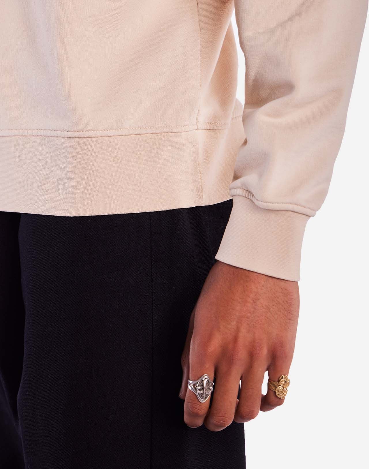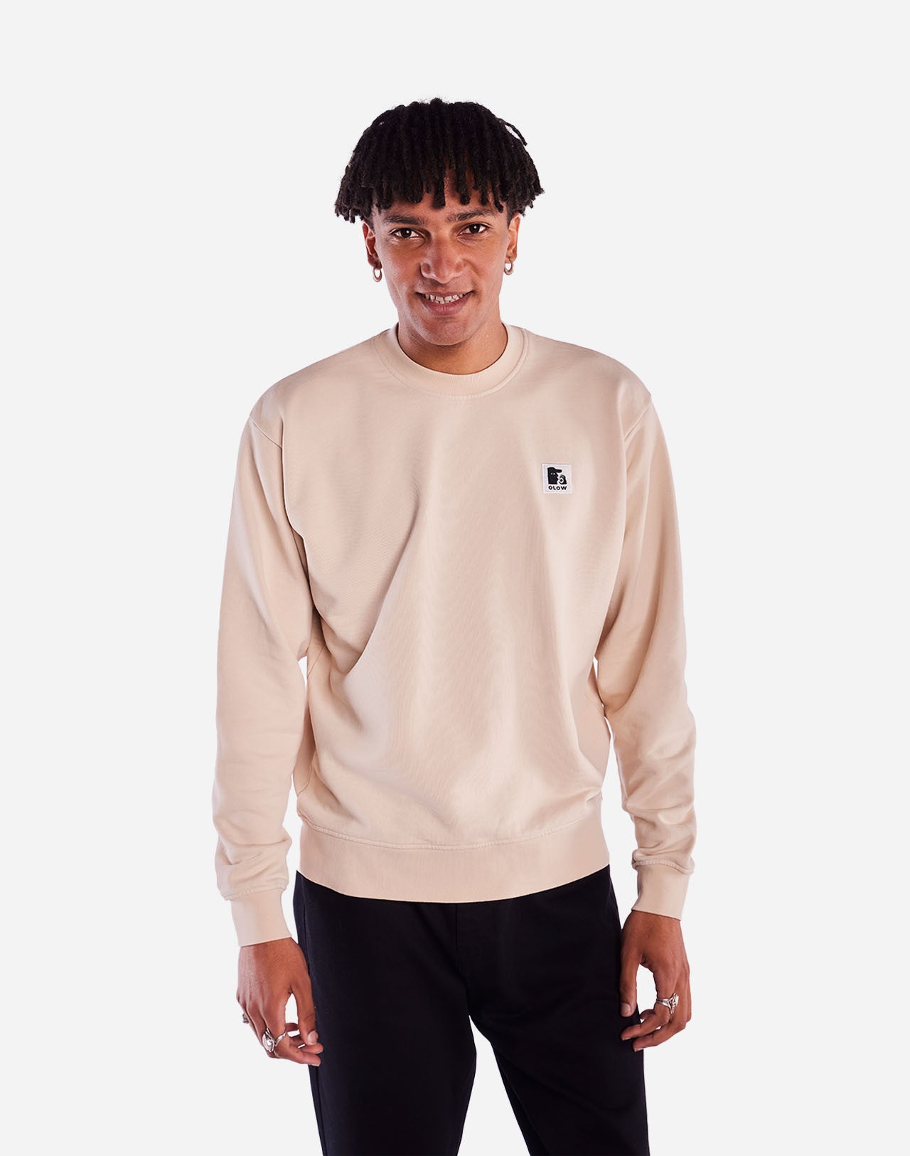 Un sweat en coton bio GOTS comme un autoportrait, aborant fièrement le visage de OLOW