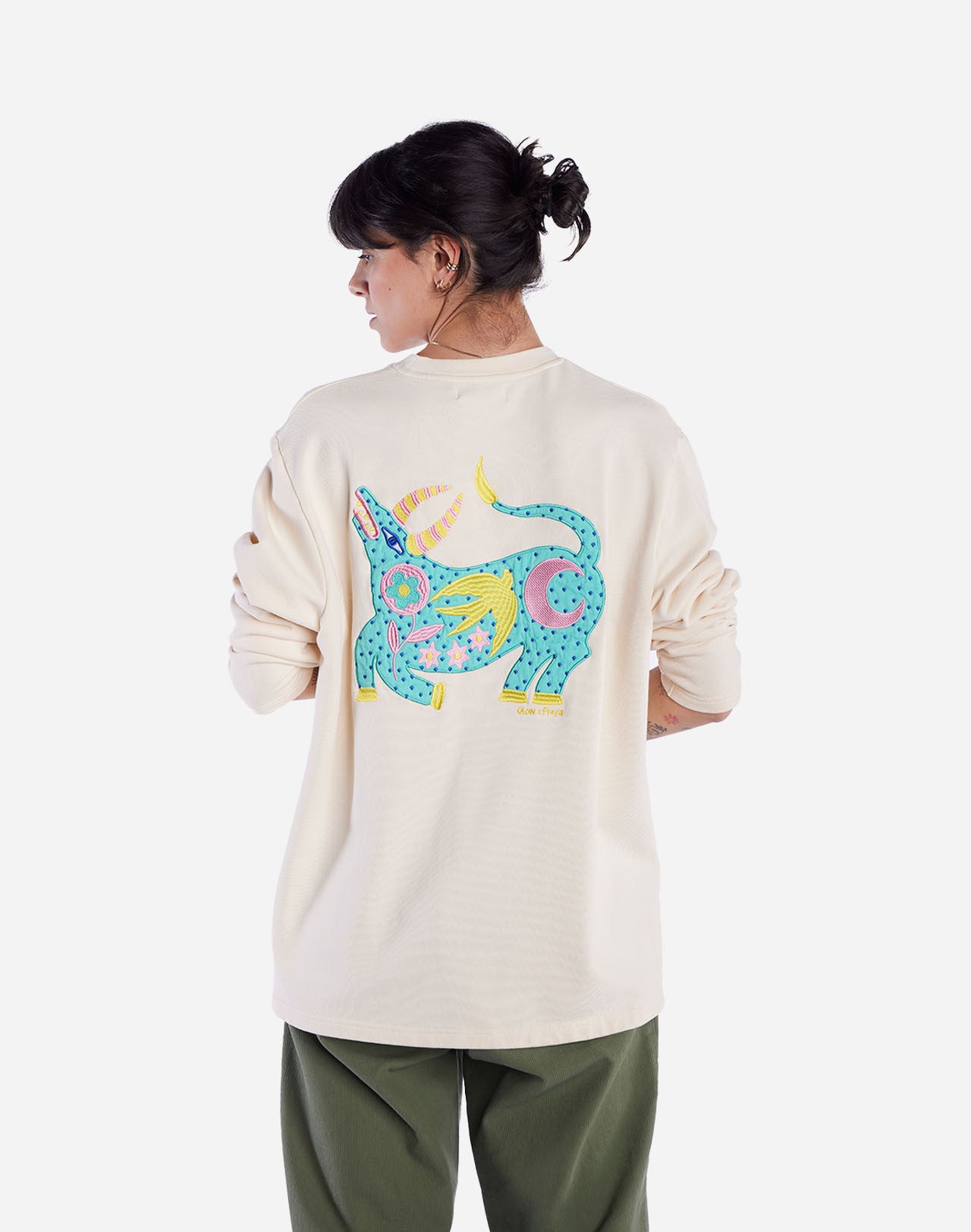 Un sweatshirt en coton bio à la gloire, littéralement, du zébu, par l'artiste Freya Clarke