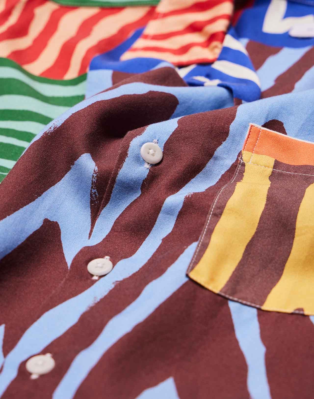 Une explosion de couleurs sur cette chemisette ample en tencel tout doux, respirant et régulant, signée par le binôme de We are out of Office.
