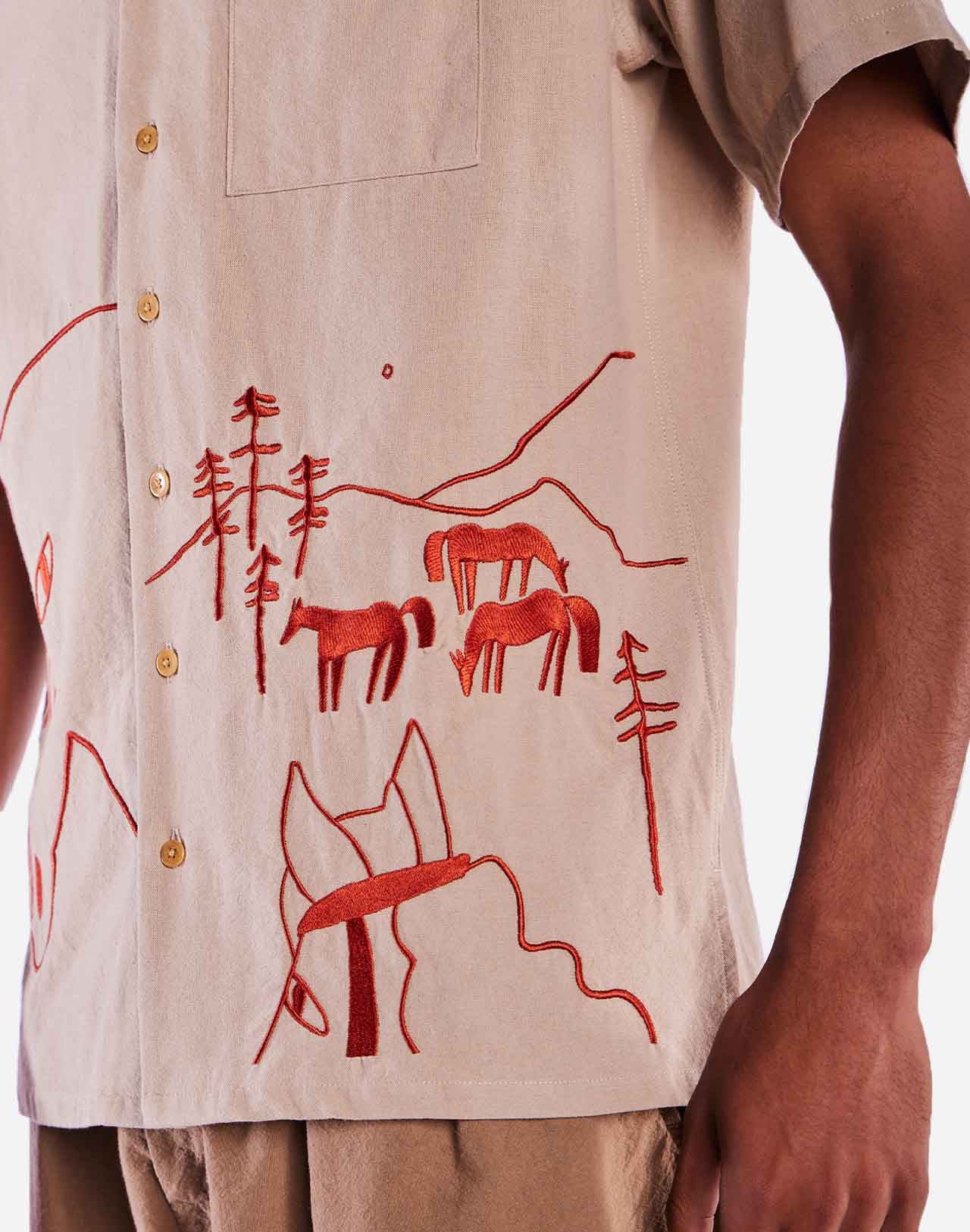 Eniko Katalin Eged nous emmène à dos de cheval dans les plaines suédoises avec cette chemisette brodée en coton bio et coton recyclé