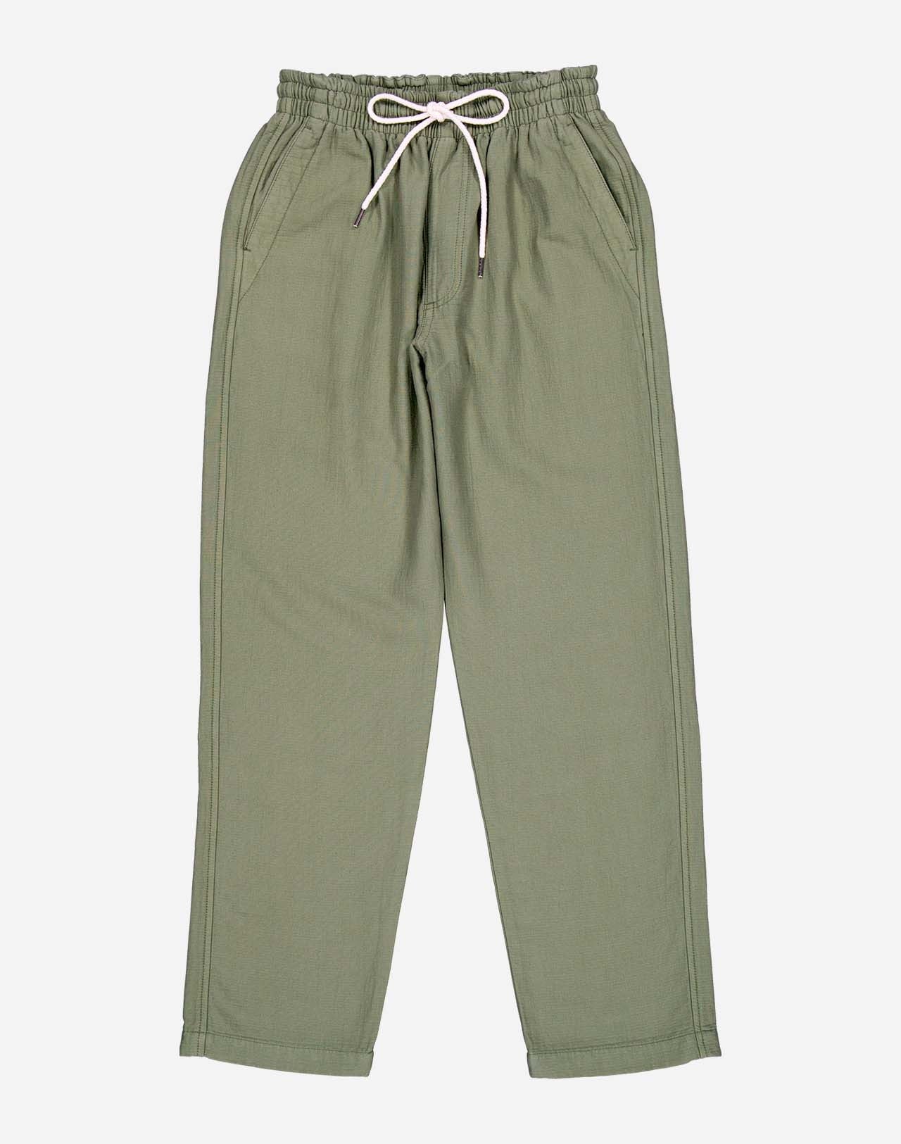 A mi-chemin entre le jogpant et le chino, le pantalon Hatha permet de se sentir à l'aise en toute circonstance. Entre sa taille élastique et son tissu tout doux, tissé en France (dans les Vosges), c'est le genre de pièce dont on a du mal à se séparer.