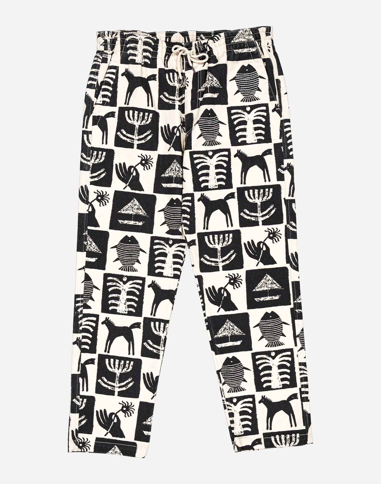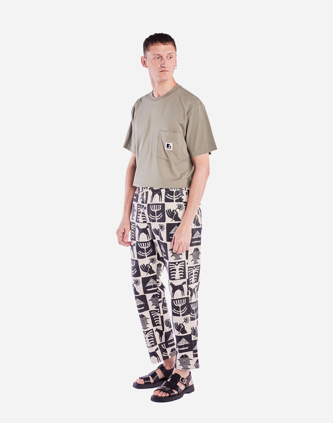 Le Hatha Tamar combine plusieurs choses : le confort d'un pantalon élastique, la robustesse d'un sergé coton bio et la poésie de l'univers d'Eniko Katalin Eged